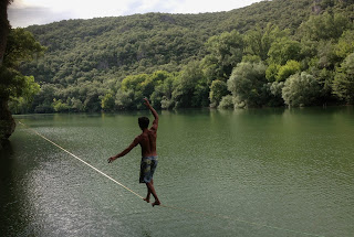 Premier week-end aux Transes Cévennoles, un festival dans un petit village des Cévennes à Sumène, avec arts de rue, spectacles et concerts pendant deux jours dans une ambiance conviviale et décontractée. On se retrouve étrangement une vingtaine de slackeurs le samedi soir pour un petit rassemblement improvisé, car l'équipe des "Lignes Gouffres" menée par le grand, célèbre et inssassiable Guillaume Barrande, est dans le coin...